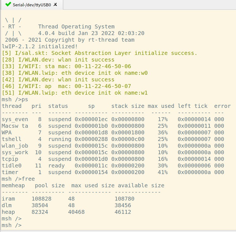 但是我并没有满足,因为我目前使用的这款芯片是一款WiFi6的IoT芯片,正好rtt也是有WLAN框架的,所以顺便也对wifi驱动也做个适配。