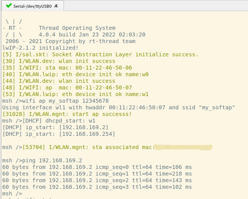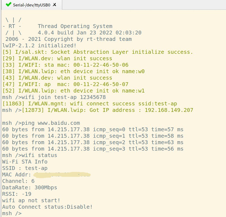 }至此就完成了wifi驱动的适配,但是目前rtt的wlan框架还不是很成熟,很多地方都不太合理,所以在适配过程中我进行了一顿魔改,哈哈哈~~~