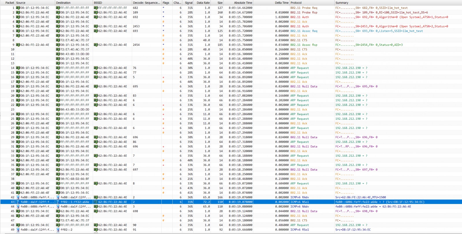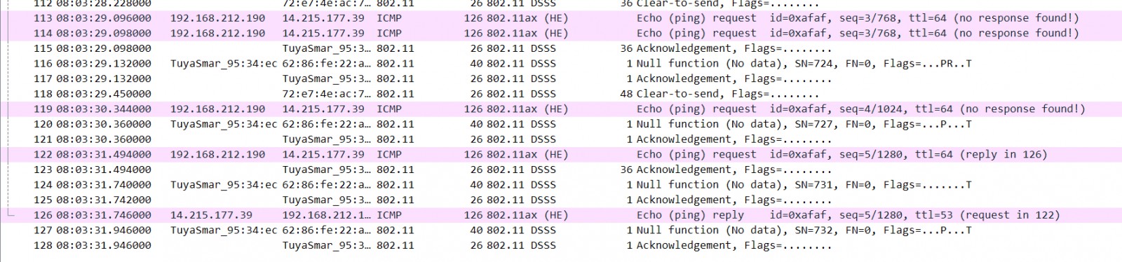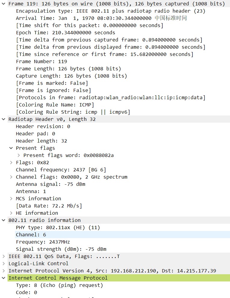我以一个sta联网并进行ping百度进行测试,已经可以抓到完整过程了: