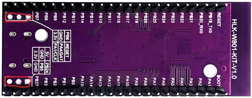 然后得再购买两块w801,淘宝上同样还是九块钱包邮,但是为了省事,这次我选择了焊接好插针的版本,多花了十块钱。等拿到手一看,这次倒是比上一篇买的w806做工好了很多,电源和gnd引脚也挺多,这才是适合人用的mcu嘛。但是,我还是泪流满面: