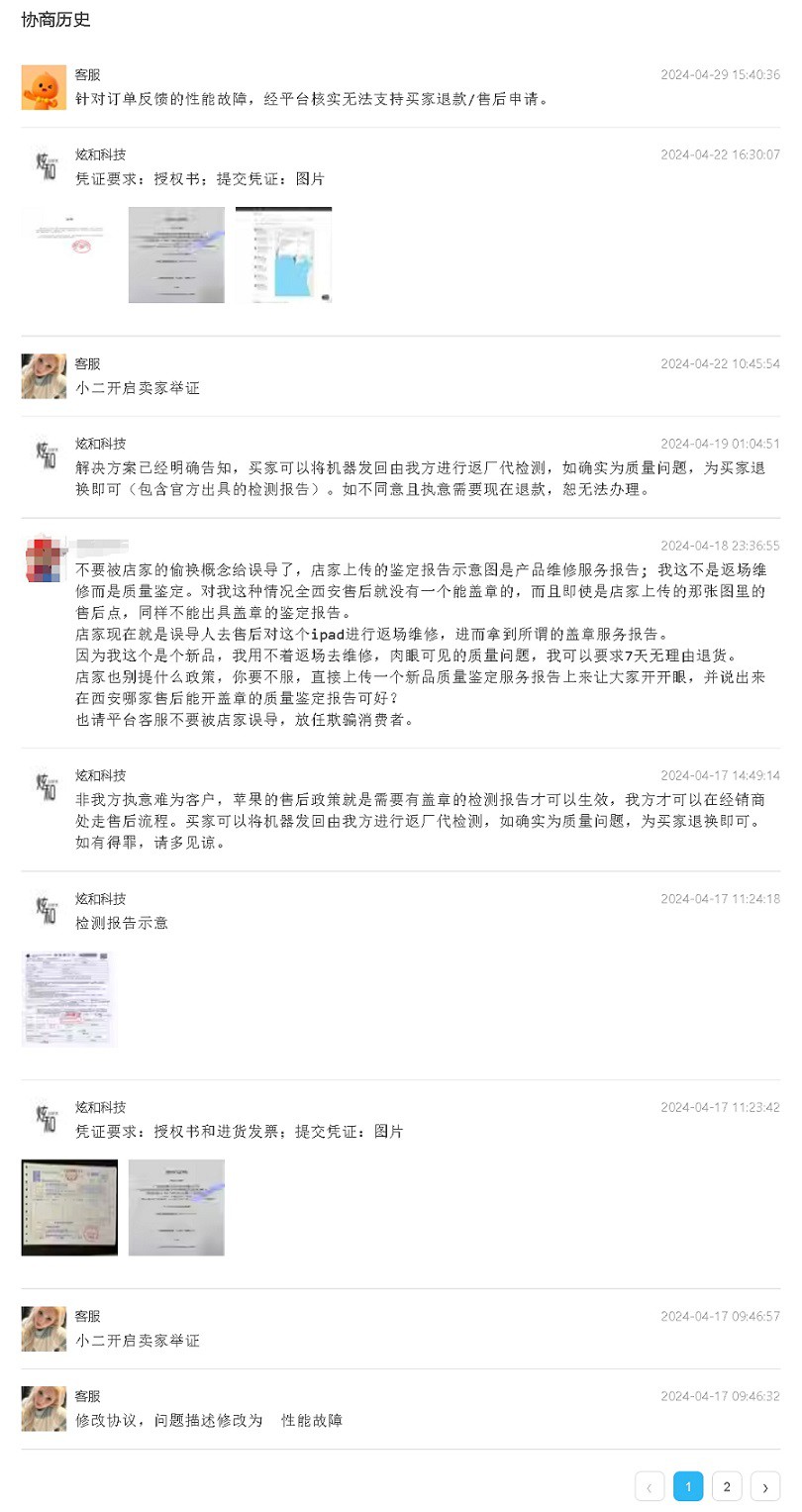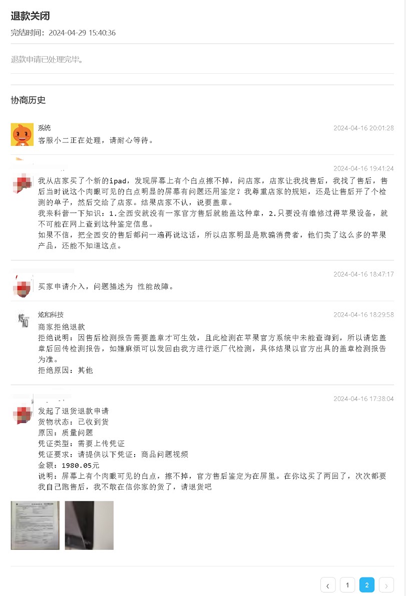 到手后试了两天,发现貌似没啥问题,就准备贴膜,结果擦了擦屏幕,细细看时却发现屏幕上有一个小白点,擦不掉,应该是在屏下,于是就问店家是不是屏有问题,店家不承认,让去苹果售后看看。于是我就拿去了售后,售后人员检查了一下说这事屏幕里面有灰,并告我说我这新买的还没过7天,让找店家退换,没必要返厂维修。我心想也是这个道理,谁新买个电子产品就乐意让返厂维修再等个十天半个月的啊。就和店家联系说你这屏幕有问题,我想退货,结果店家不允许,接下来就开始一番魔幻之旅。